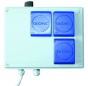 Блок управления для Топас, который в свою очередь предназначен для биологической очистки сточных вод, состоит из множества кнопок и переключателей на передней панели блока. Так же внутри блока, расположен блок питания, от которого исходит две розетки, для компрессора и дренажной станции.